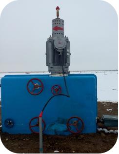 2、地面裝置結(jié)構(gòu)簡單,安裝方便,可直接與井口套管四通連接,占地面積小。